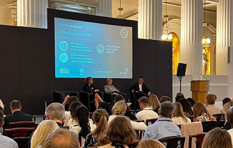 Our panel of LPs – Julia Groves, Managing Director for Sustainability at the British Business Bank, and Stephanie Kempton, Investment Manager at Legal & General Capital joined Henry Philipson, Director of Marketing and Communications at Beringea on stage – explained that they will often flex requirements for ESG when dealing with smaller investment firms.